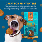 These crunchy, protein-rich chips are gently air-dried to dehydrated perfection. Our two-ingredient treats are great for training dogs of all sizes and breeds, especially picky eaters and pets with sensitive stomachs. Enjoy the best healthy treats for dogs with no fillers, preservatives, added ingredients or flavors, just wholesome goodness in every bite!